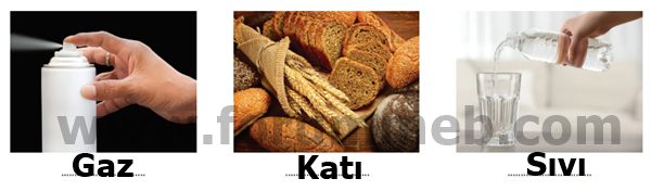 3. Aşağıda maddenin üç hâli yazılmıştır. Maddenin belirtilen hâllerine uygun üçer örnek yazınız.