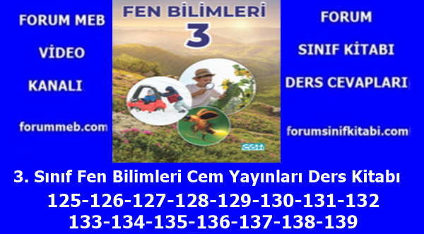 “3. Sınıf Fen Bilimleri Kitabı Sayfa 125-126-127-128-129-130-131-132-133-134-135-136-137-138-139 Cevapları Cem Yayınları”