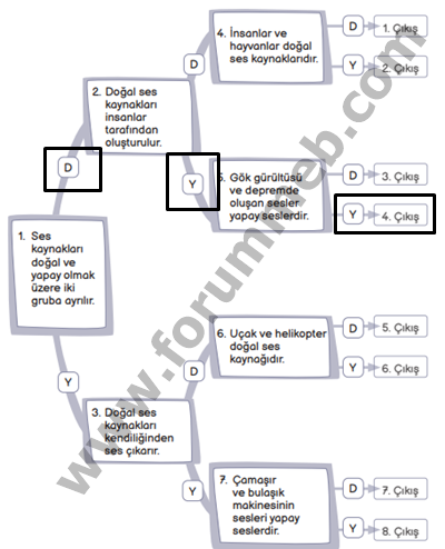 8. Aşağıdaki ifadelerin doğru (D) ya da yanlış (Y) olduğuna karar vererek ilerleyiniz. Ulaştığınız kutuyu boyayınız.