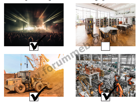 4. Ses şiddetinin yüksek olduğu ortamların bulunduğu görselleri işaretleyiniz.