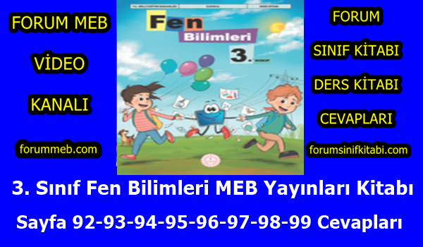 “3. Sınıf Fen Bilimleri Ders Kitabı MEB Yayınları Sayfa 92-93-94-95-96-97-98-99 Cevapları”