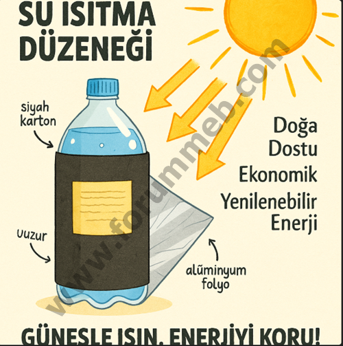 Sonuç: Sadece güneş enerjisini kullanarak suyu ısıttım. Bu düzenek sayesinde enerji tasarrufu sağlanır ve doğa korunur.