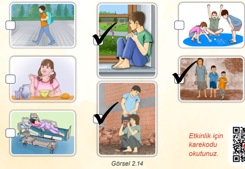 2. Görseldeki çocukların yaşantılarını karşılaştırarak düşüncelerinizi arkadaşlarınızla paylaşınız.