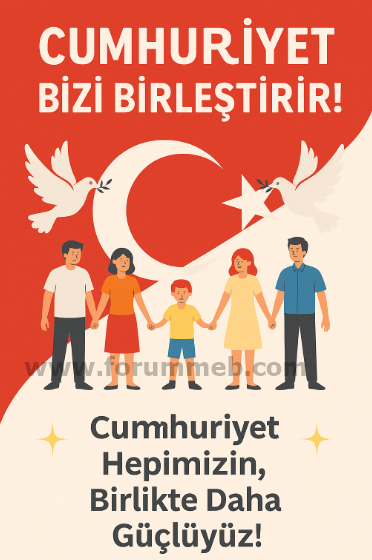 Soru : Cumhuriyet’in ve değerlerinin birlikte yaşama kültürüne katkısını anlatan bir afiş hazırlayınız. Afişinizi bir sloganla destekleyiniz. Hazırladığınız çalışmayı sınıfta arkadaşlarınızla paylaşınız.