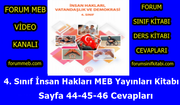 İlkokul 4. Sınıf İnsan Hakları MEB Yayınları Ders Kitabı Birlikte Yaşama Kültürümüz Metni Etkinlik Cevapları Sayfa 44, 45, 46