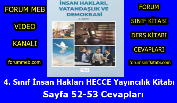 4. Sınıf İnsan Hakları Hecce Yayıncılık Ders Kitabı Sayfa 52 Cevapları