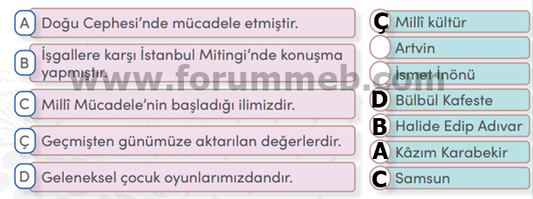 C. Verilen açıklamaları uygun olan kavramlarla eşleştiriniz.