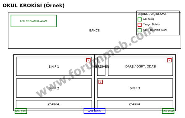 Soru : Okulunuzun krokisini çiziniz. Varsa acil toplanma yerini, acil çıkış kapılarını ve yangın dolaplarını krokinizde gösteriniz.