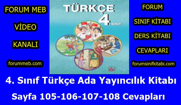 4. Sınıf Türkçe Ada Yayıncılık Ders Kitabı Sayfa 108 Cevapları