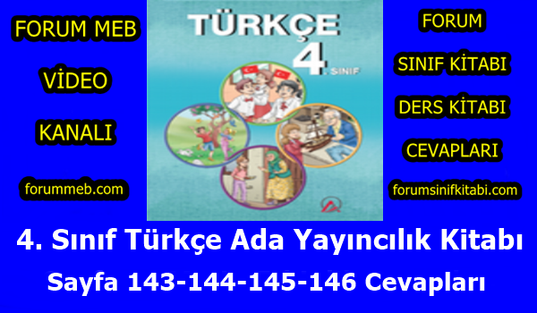 “4. Sınıf Türkçe Kitabı Sayfa 143-144-145-146 Cevapları Ada Yayıncılık”