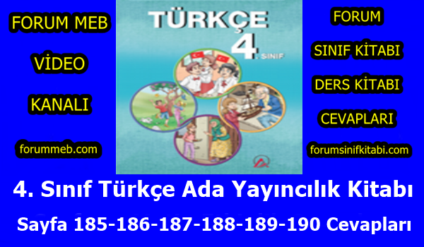 “4. Sınıf Türkçe Kitabı Sayfa 185-186-187-188-189-190 Cevapları Ada Yayıncılık”