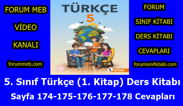 “5. Sınıf Türkçe (1. Kitap) Sayfa 174-175-176-177-178 Cevapları MEB Yayınları”